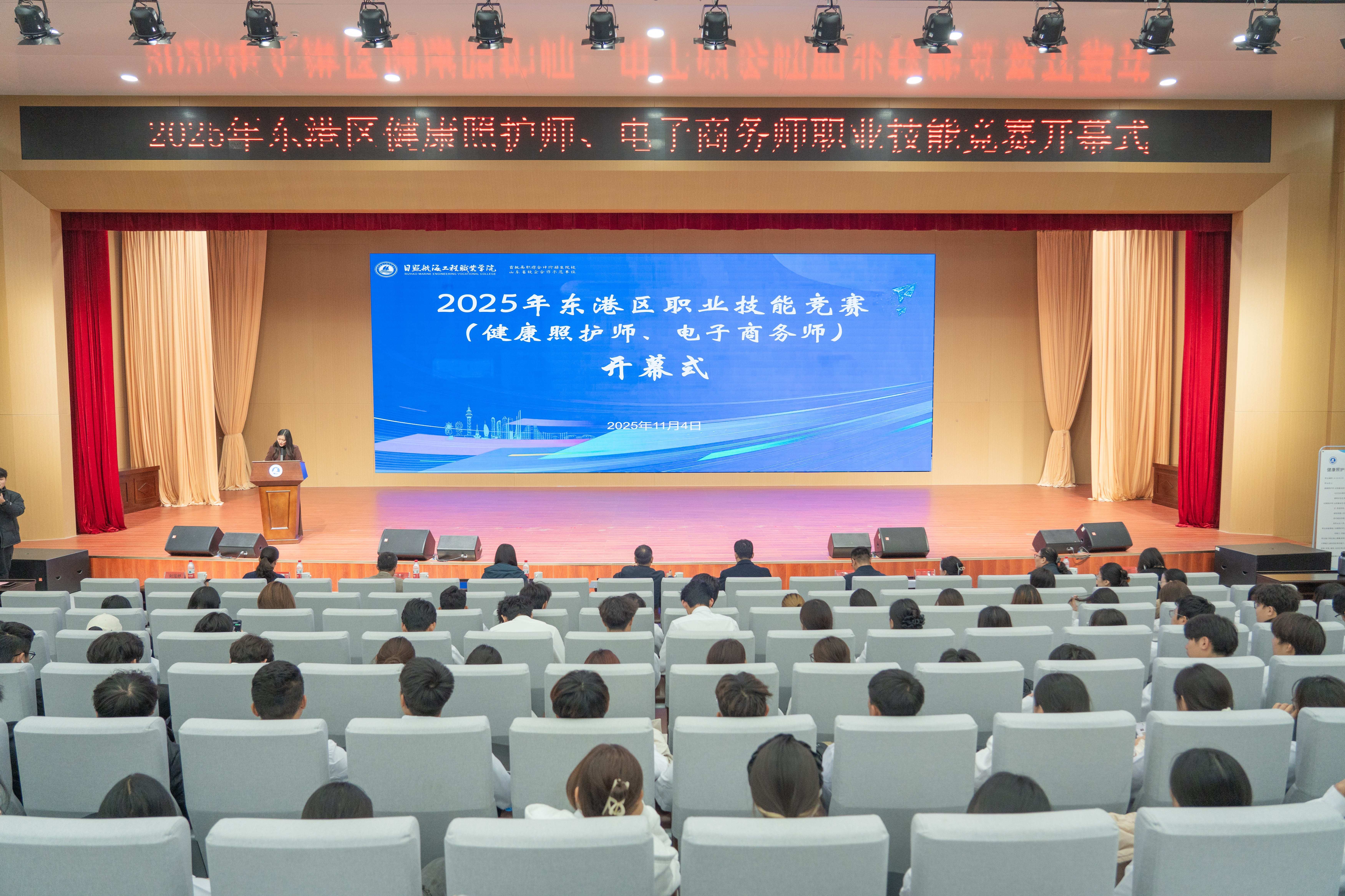 11月4日下午2时,2025年东港区健康照护师、电子商务师职业技能竞赛在日照航海工程职业学院知行报告厅隆重开幕。本次大赛由东港区人力资源和社会保障局、东港区团区委、东港区妇女联合会联合主办,日照航海工程职业学院承办。