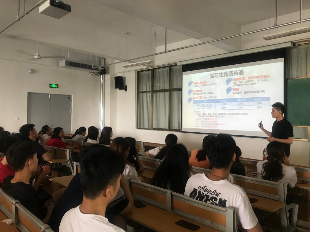 7月4日,日照蓝海大酒店人事负责人常经理到我院与17级国际邮轮乘务班师生进行座谈。