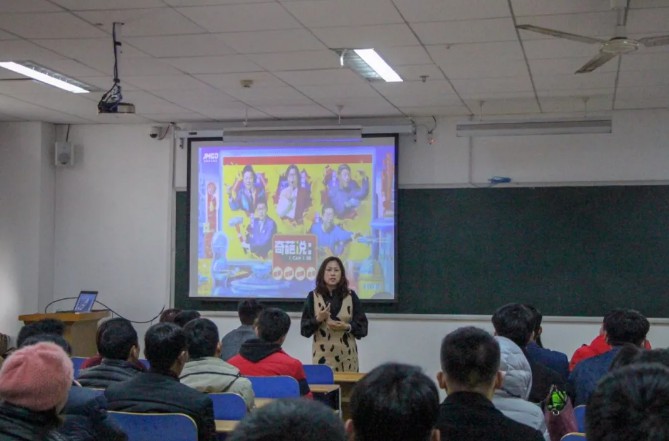 在播放完蒂森克虏伯电梯的宣传片后,蒂森克虏伯电梯青岛分公司人事经理戴娟上台进行宣讲。戴经理结合多年任职于蒂森克虏伯电梯的工作经验,以及从毕业到现在担任经理职位的心路历程,不但生动有趣地为同学们介绍了蒂森克虏伯的历史和文化,还讲解了蒂森克虏伯的职业发展前景和自身的生活工作经历,同学们都听得聚精会神。