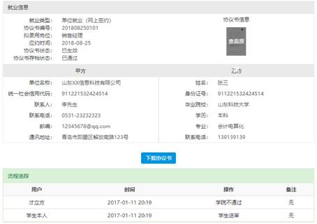 2、应约。学生应约生成协议书,发送审核,可对审核过程跟踪。离校前由毕业院系或学校审核,离校后发送单位注册地区县人社部门审核。