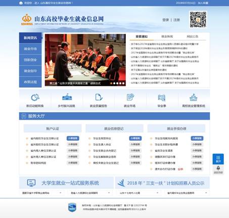 功能描述:实现山东省内院校离校未就业毕业生实名登记功能,登记就业、升学、出国、应征入伍以及未就业毕业生服务需求信息。