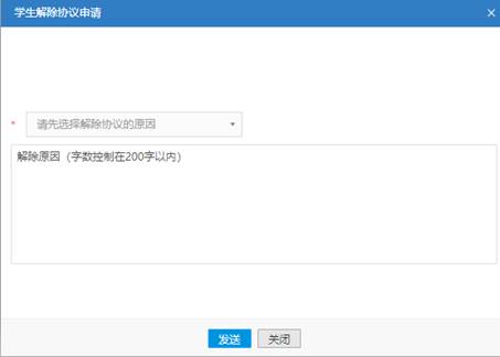 (1)学生提出解约申请:学生选择解约类型,填写解约原因,发送单位,等待单位答复。