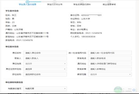 功能描述:实现省内院校毕业生与省外非系统注册单位落实就业后信息登记功能。由毕业生录入就业协议信息,提交毕业院校审核。