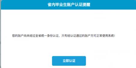 点击立即认证按钮,学生注册填写的五个关键信息与全省生源信息库核对,核对一致提示认证通过,核对不一致,提示失败。