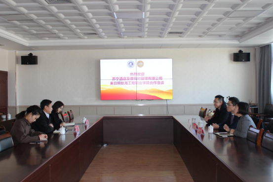 2020-01-10 zsb 我校管理学院和苏宁酒店校企合作座谈会在世德楼904会议室举办1月8号上午,管理学院和苏宁酒店校企合作座谈会在世德楼904会议室举办。校领导苏峰、管理学院院长赵晓利参加了本次座谈会。座谈会主要围绕提高学生就业率、促进学生发展、如何更好的培养酒店管理人才展开讨论。