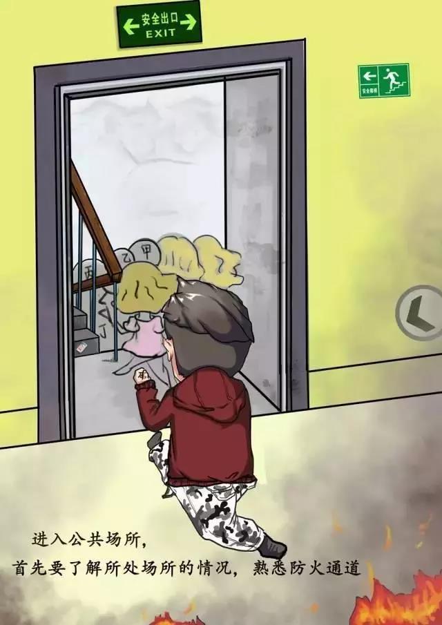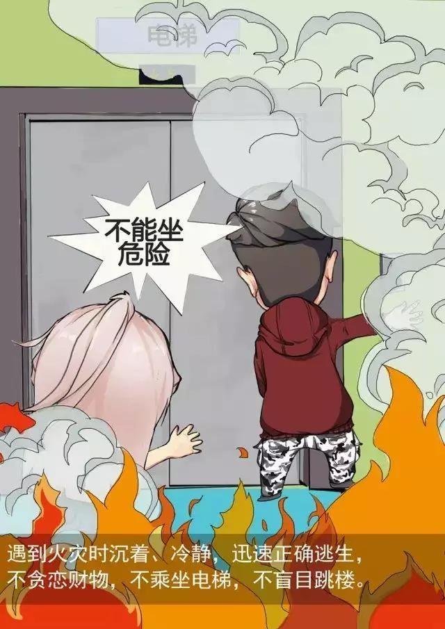 直奔通道,顺序疏散,不入电梯,以防被关;