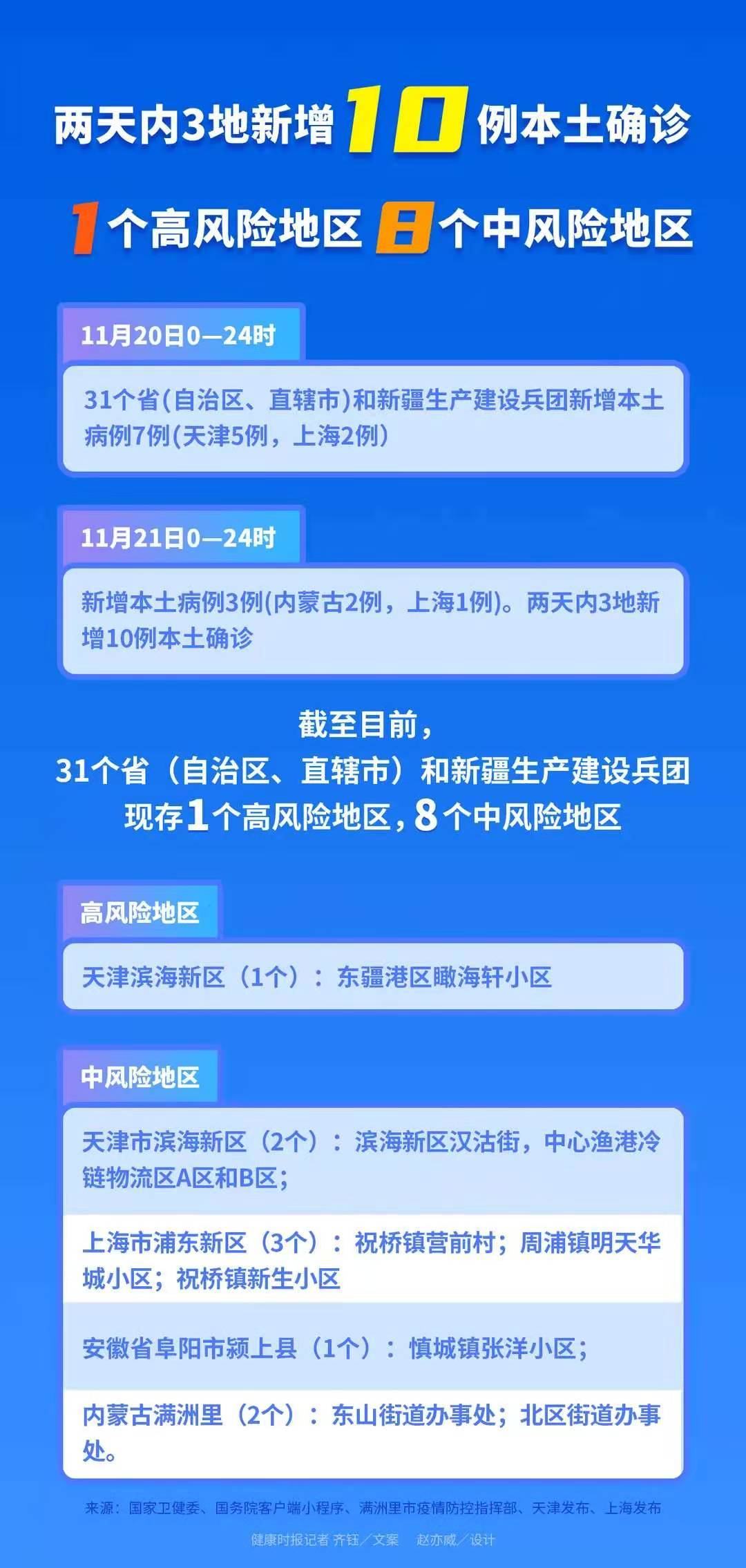 两天内,3地新增10例本土确诊患者,现阶段1地成为高风险地区,8地成为中高风险地区。