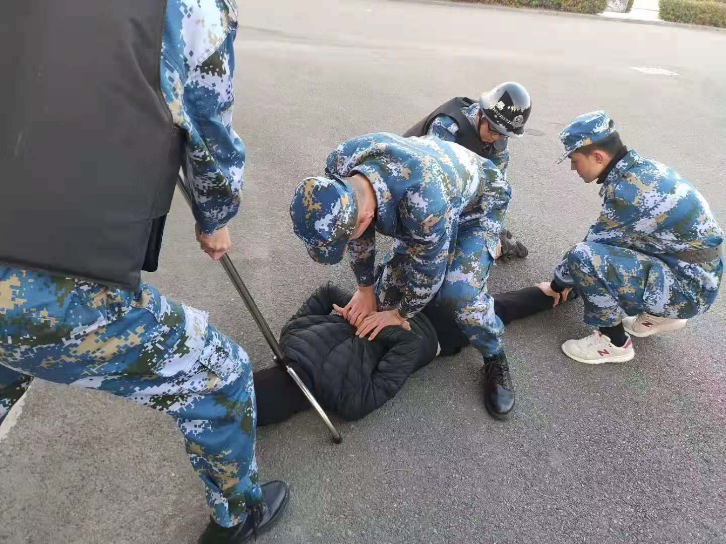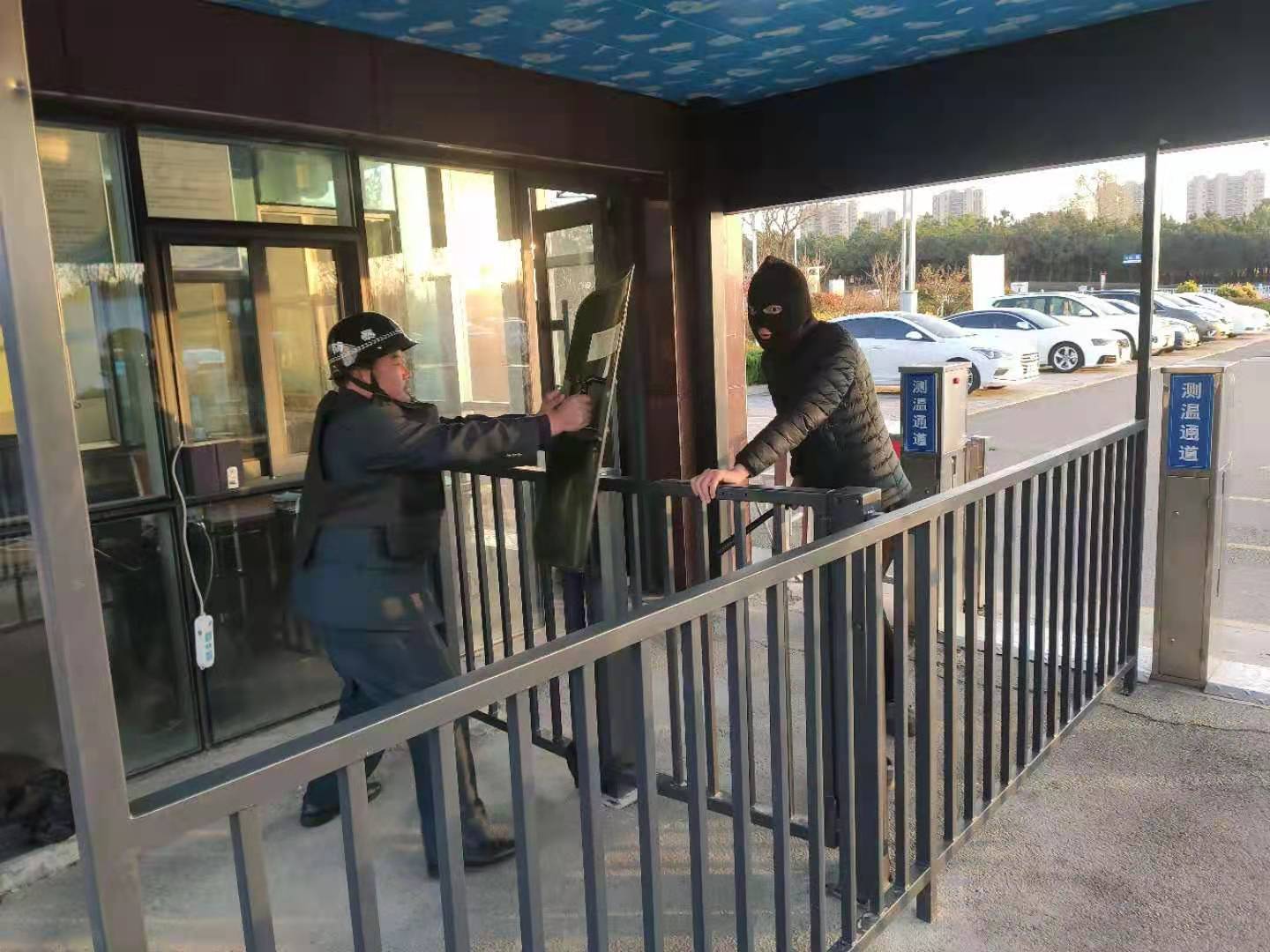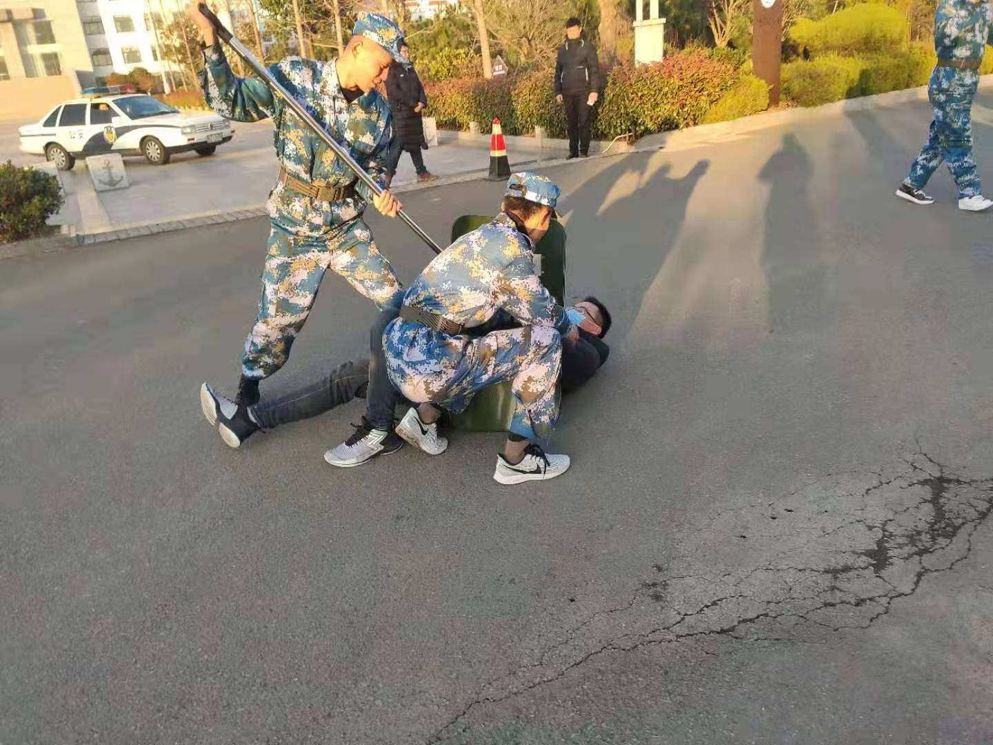 2、校园袭击事件时的安保人员临时处置(与歹徒周旋和报告)演练