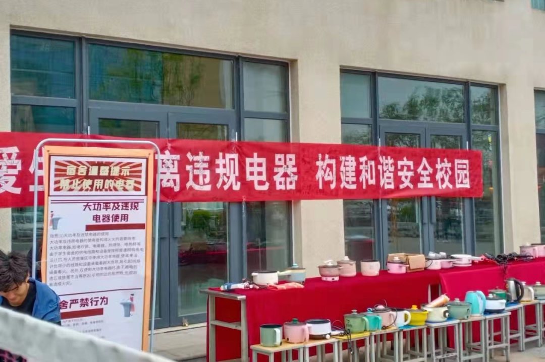 本次活动以展板海报和条幅的形式进行宣传,活动内容主要以寝室大功率违禁品存在的危险进行宣传和解读。