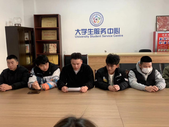 2023年3月2日上午,我校2023年春季入伍学生座谈会在大学生活动中心举行。学生处处长黄志宇、武装部干事丁涵、应征入伍学生代表及相关学院辅导员等出席会议。 座谈会上,预备入伍学生进行了自我介绍。