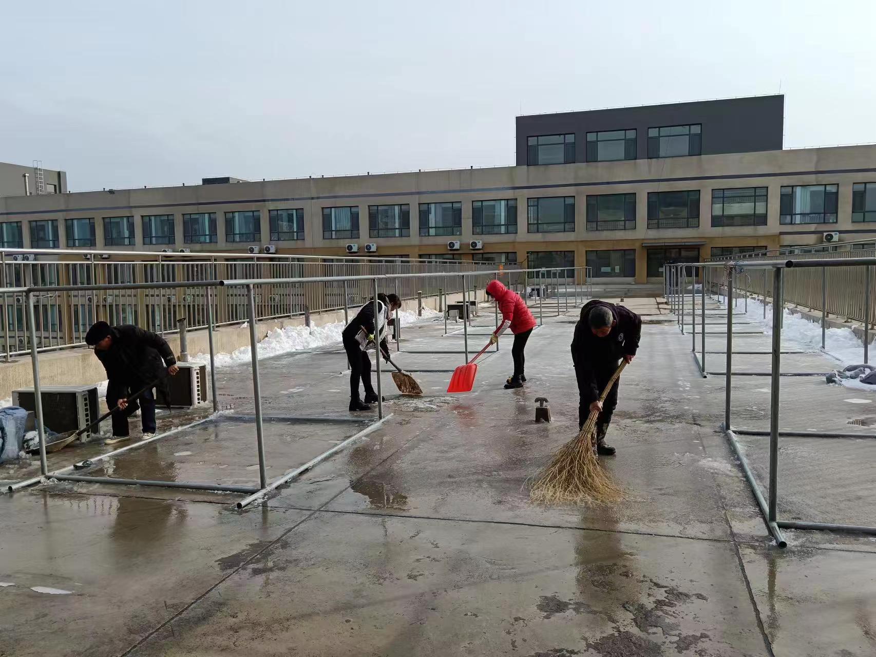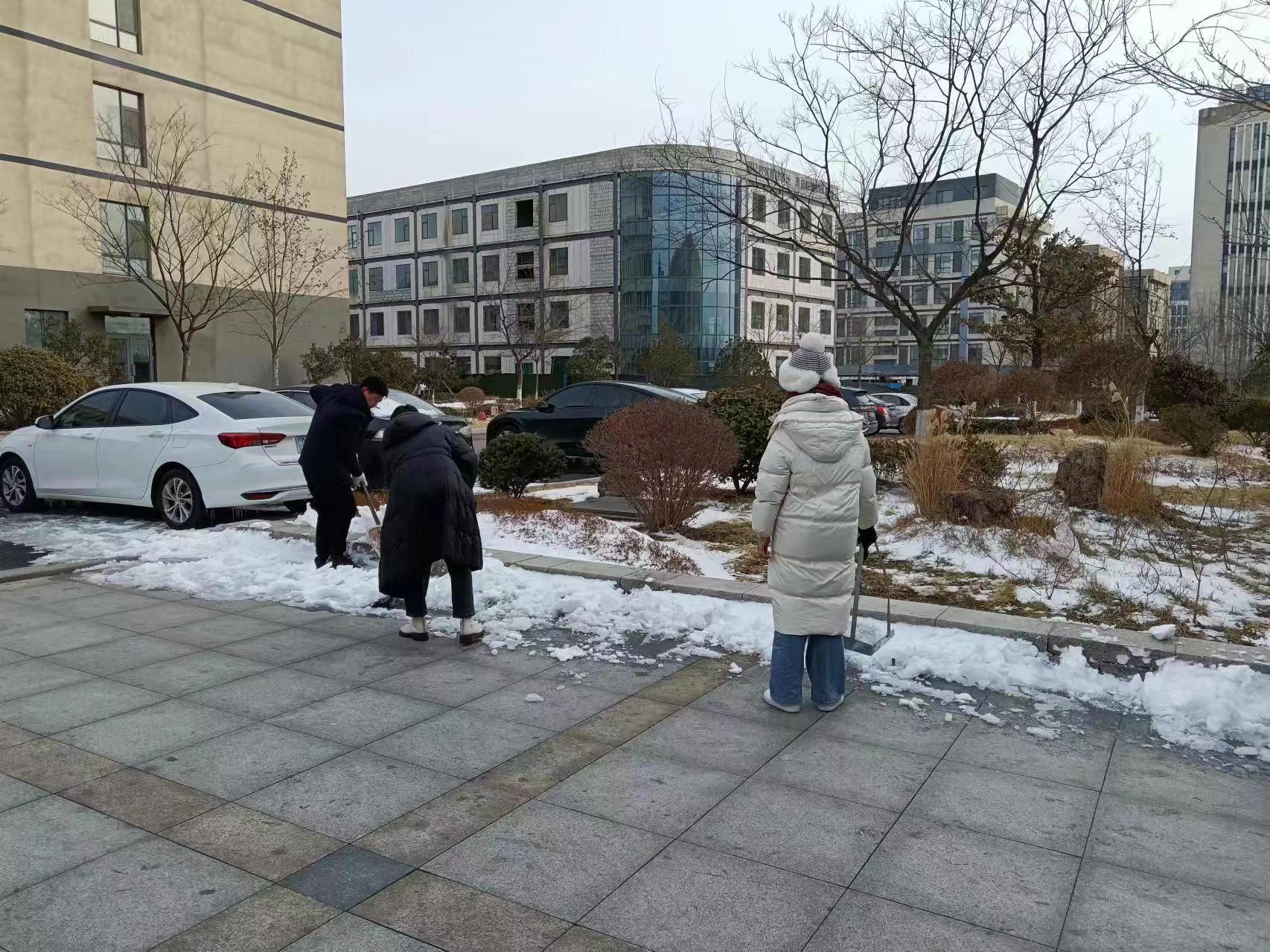 在这寒冷的冬日里,老师们不畏严寒,有的挥舞着铁铲,将厚厚的积雪铲除;有的则用扫帚细心地清扫着每一个角落。他们的身影在雪地中忙碌着,构成了一幅幅温馨的画面。雪花落在他们的头上、肩上,与他们的汗水交织在一起,化作了冬日里最动人的风景。