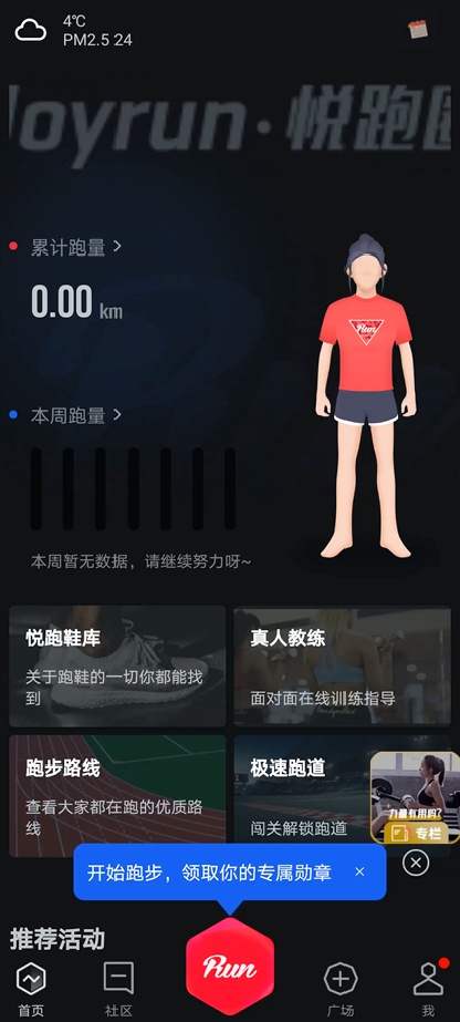 2.下载计数“悦跑圈”APP,用报名的同一手机号注册 账号。