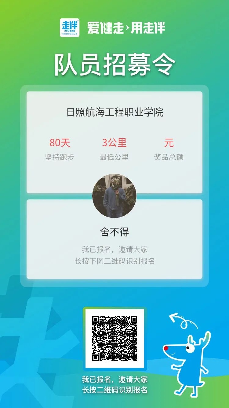 3.每人只能报名一支团队,报名后不可调换。 4.每个组别的公里数为每天的最低公里数,有效运动量 达到最低公里数方可打卡。