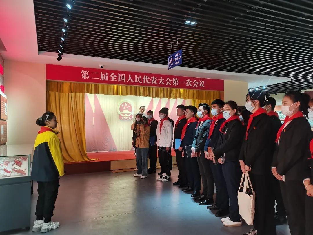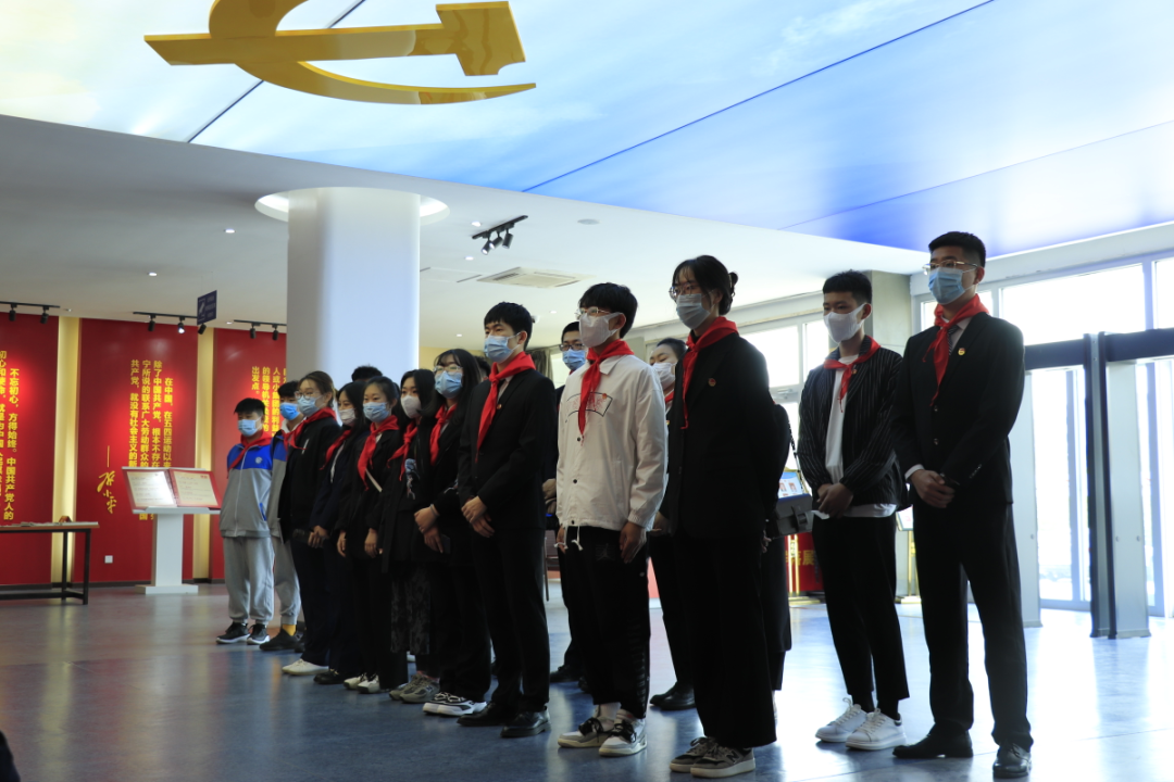 首先各高校学生代表于日照市政府广场集合出发,向莒县本色—老党员红色群落展览馆开展党史教育,重温入团誓词,到达展览馆门前,事先到达的小少先队员为学生代表们佩戴了红领巾,在参观展览馆中,小少先队员们生动的向我们讲述了莒县建国前老党员的“本色”精神,即“一心向党,公心为民,用心实干,清心律己,热心传承”,小少先队员的讲解让学生代表们身临其境,仿佛回到了老党员们年青时候的年代。艰苦不易,舍身为国的奋进历程,是老党员的称号。随后,全体学生代表们在鲜艳的团旗下重温了入团誓词。在庄严的宣誓声表达着对祖国的忠诚,这更是一份庄严的承诺。