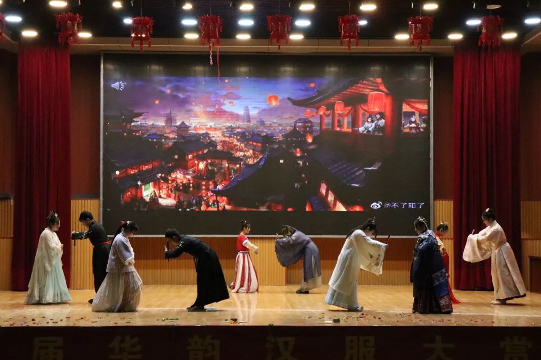 她们开始舞蹈了。用她的长眉、妙目、手指、腰肢、头上的头饰、腰间的铃铛,以及她细腻迷人的舞步,轻云般慢移、旋风般疾转,用优美动人的舞蹈将汉服的精美绝伦展现了出来就。