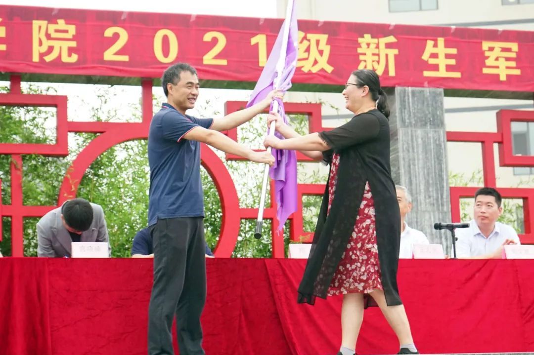 仪式最后,郑峰副院长向军训团授旗并宣布军训开始。