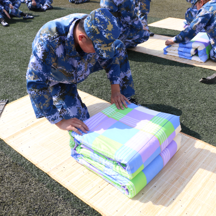 平时在家中不愿意叠被子、铺床的孩子们,不仅可以把床铺铺得整整齐齐、干干净净,还会把被子叠成豆腐块,每个人都想展示出自己最好的水平,在宿舍内务评选中获得好名次。他们按时休息、劳逸结合,精神饱满、朝气蓬勃的迎接每一天。