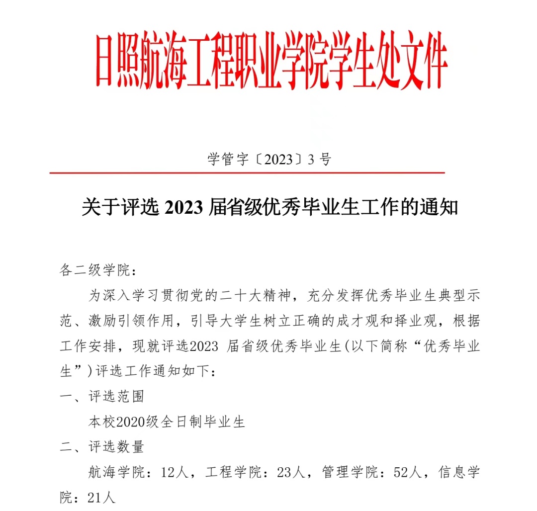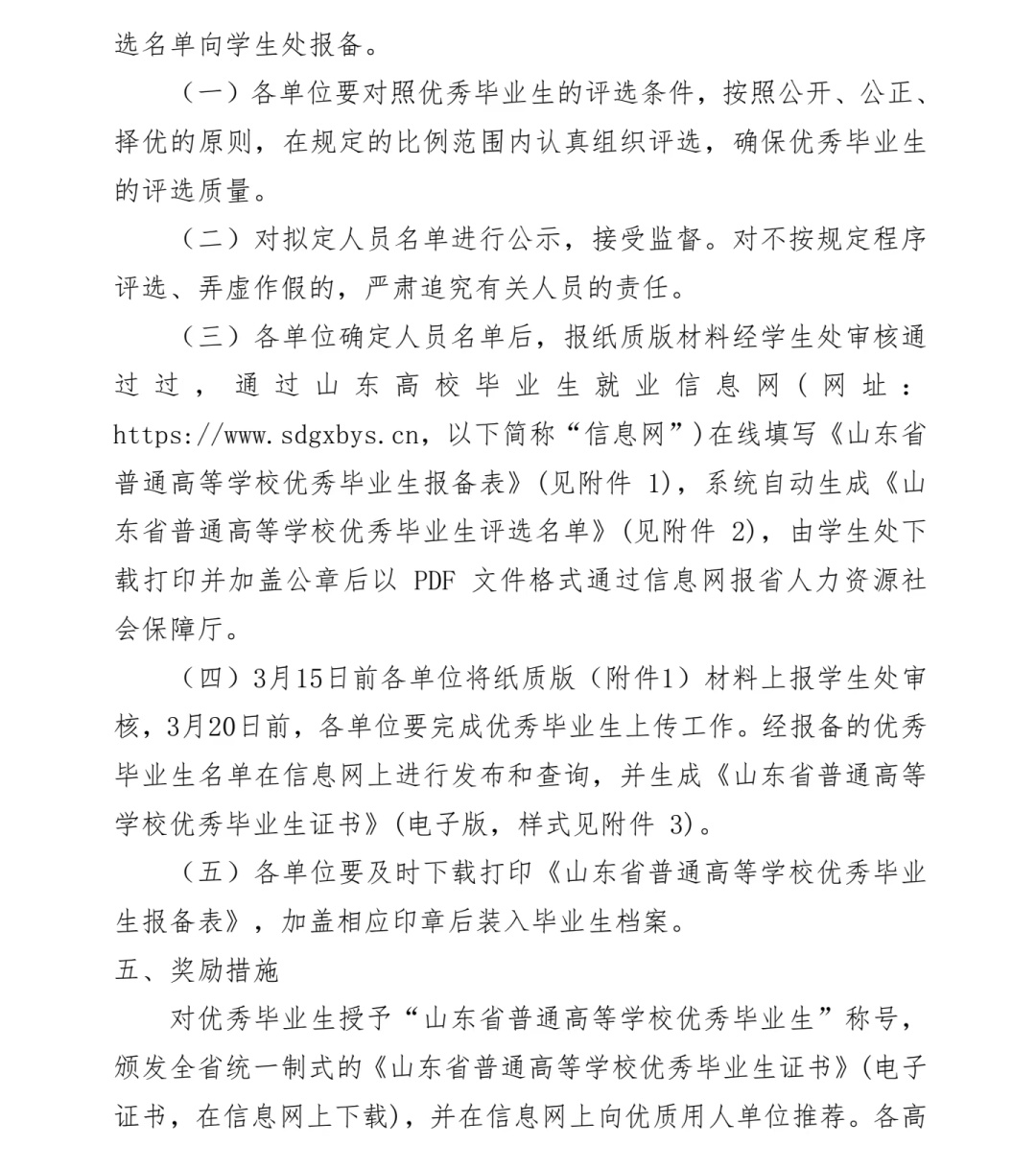 2023-03-08 xsc 附件:关于评选2023届省级优秀毕业生工作的通知.pdf附件1 山东省普通高等学校优秀毕业生报备表.docx附件2 山东省普通高等学校优秀毕业生评选名单.docx附件3 山东省普通高等学校优秀毕业生电子证书样式.docx