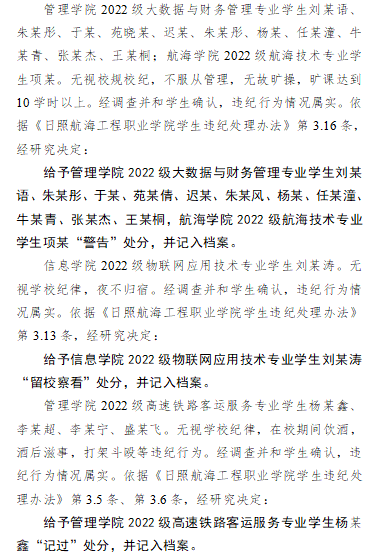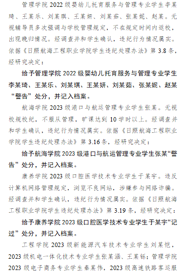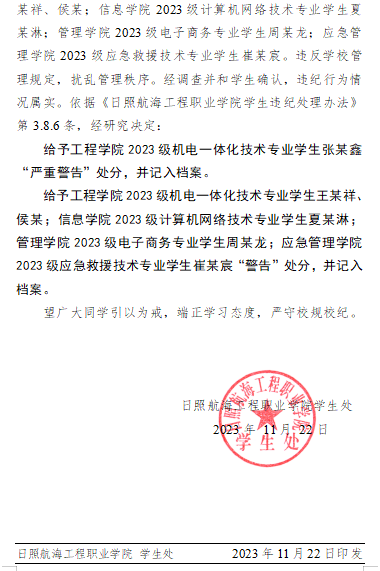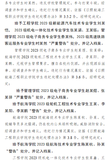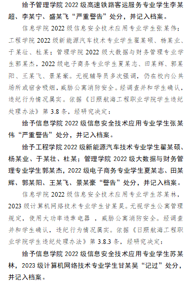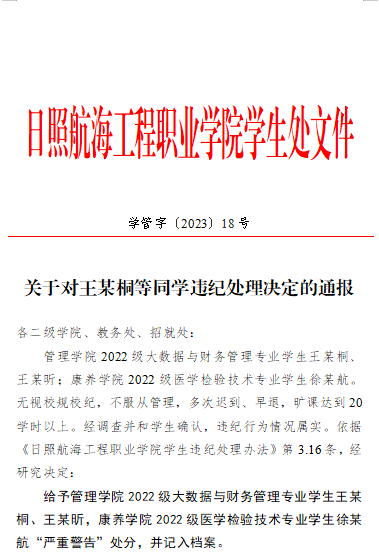 关于对王某桐等同学违纪处理决定的通报