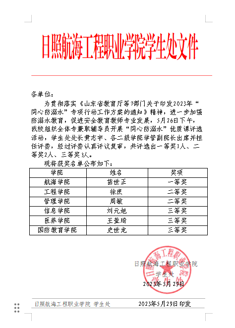 日照航海工程职业学院“同心防溺水”优质课评选