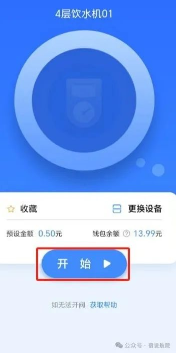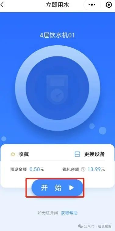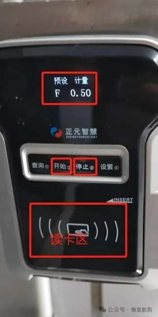 开始用水:点击手机屏幕的开始按钮,在卡机上显示用水金额,点击卡机开始按钮,饮水机出水;结束用水:点击手机屏幕的结束按钮或者卡机的停止按钮;(校园卡用热水,把卡放到卡机读卡区域,按开始按钮设备出水,按停止按钮设备停水)