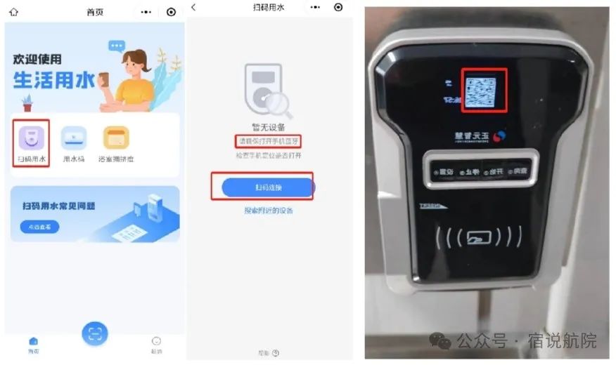 手机微信扫一扫进入航院扫码用水小程序,或者微信搜索航院扫码用水小程序(手机扫码用水,只支持在1、2、4、8号公寓楼)