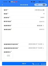 点击每个报修记录,可以查看报修详情和维修进度;点击发起报修按钮,进入发起报修页面,填写相关信息提交报修,注意:*表示的是必填项。