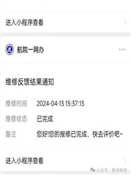 维修完成后请进行反馈,点击微信推送的消息,进入评价页面,填写相关信息之后提交。