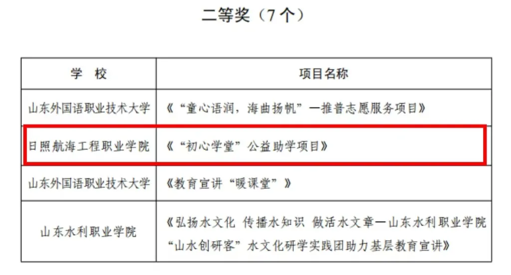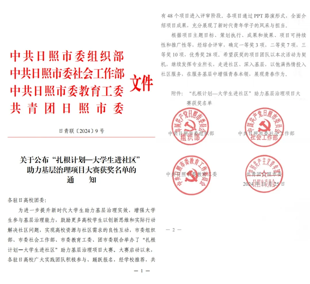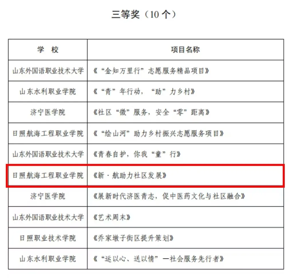 在助力基层治理的广袤舞台上,我校青年志愿者协会凭借一腔热忱与实干精神,于“扎根计划大学生进社区,助力基层治理项目大赛”中脱颖而出。《“初心学堂”公益助学项目》志愿服务项目荣获二等奖、《新·航助力社区发展》志愿服务项目荣获三等奖。