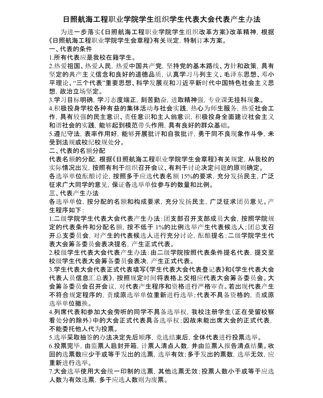 七、校级学生代表大会代表产生办法