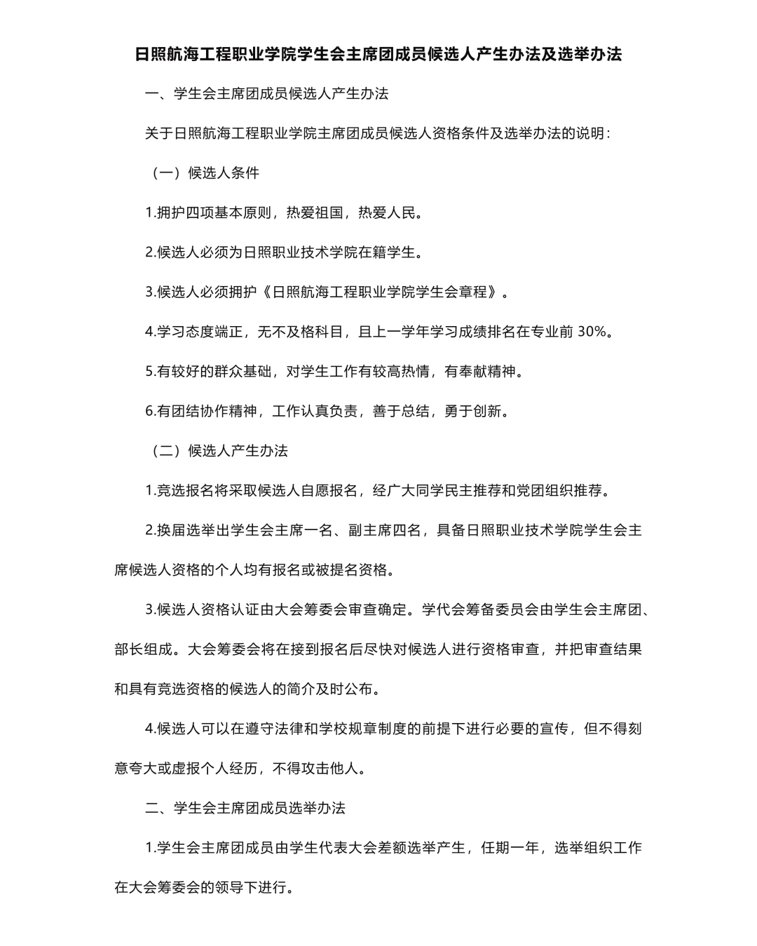 五、候选人产生办法及选举办法