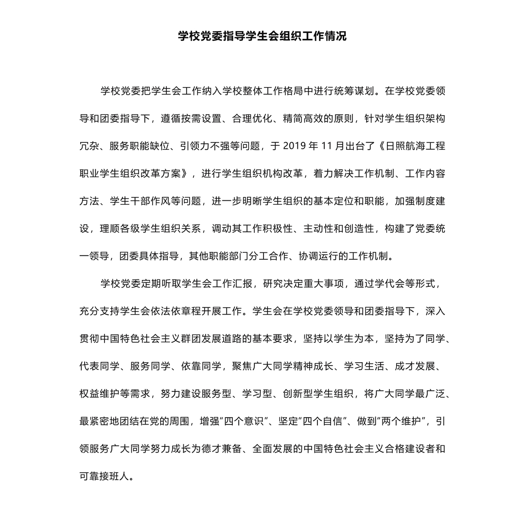 日照航海工程职业学院学生会组织改革情况