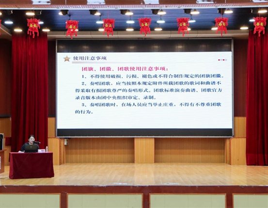 和雯雯老师通过讲解团徽、团旗、团歌、团章、团员证的历史起源、设计意义以及象征内涵,使我校全体入团积极分子深刻体会到了共青团的历史和精神。同时穿插讲解团的基础业务和知识,使我校全体入团积极分子更全面的认识共青团。