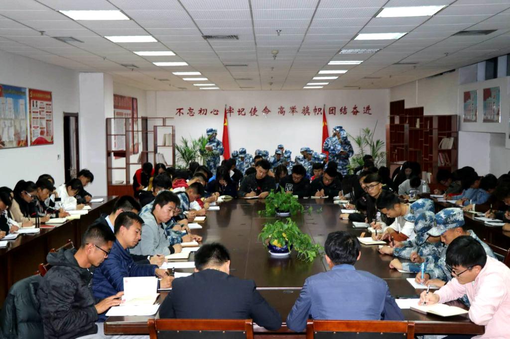 为积极贯彻落实学院党总支“两学小组”活动的开展,做到“党有号召、团有行动”,10月31日,学院团委组织全体学生干部和国旗护卫队成员在世德楼党员活动室开展“两学小组”工作推进会议。党办助理、“两学小组”工作领导小组成员张宗进,学生处处长、院团委书记黄志宇及各学院领导老师出席了本次会议。