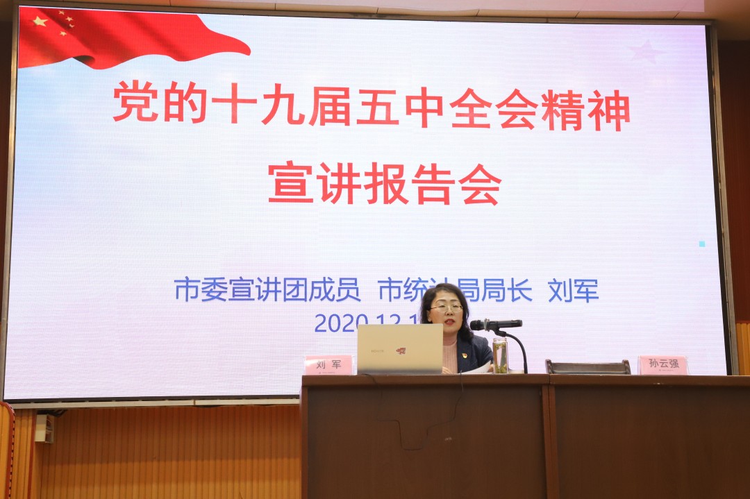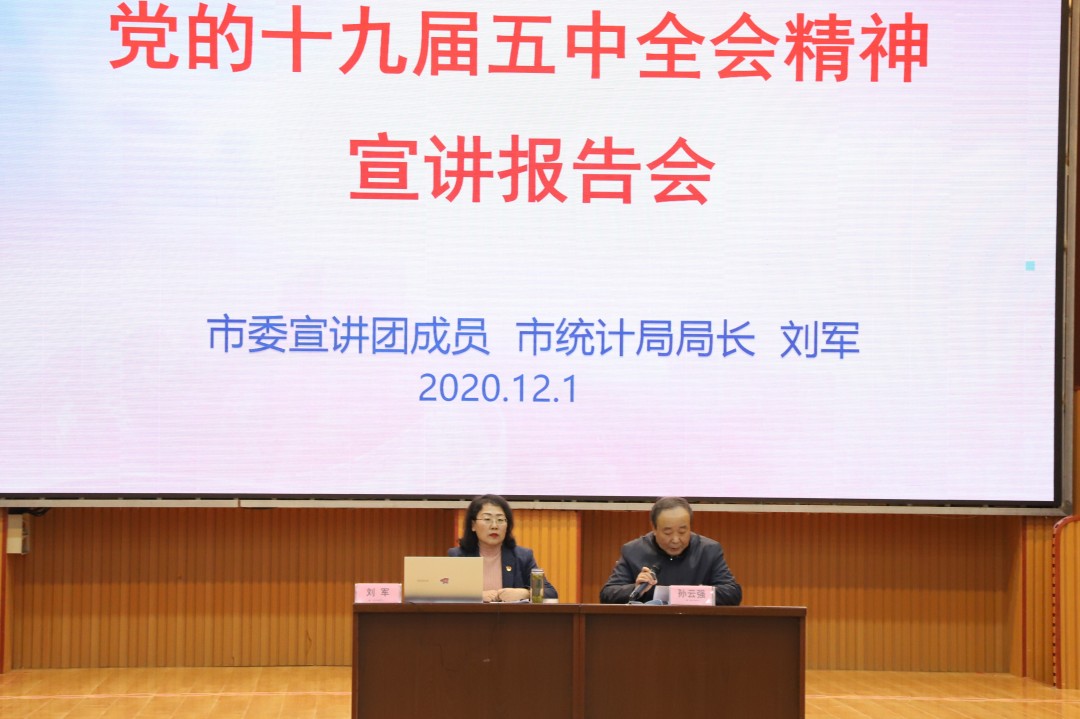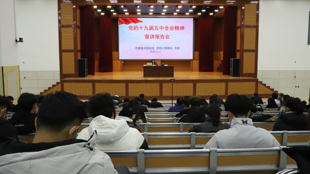 报告会上,市统计局局长刘军同志深刻解读了党的十九届五中全会召开的重大意义,深入解读了“十四五”规划建议的框架构成、核心要义,并聚焦为同学们讲解新发展阶段的新机遇和新挑战。