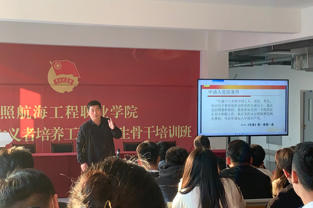 于11月19日下午15:40由航海学院党支部书记、院长:郭文波讲课,以“争做新时代合格党员”为主题。
