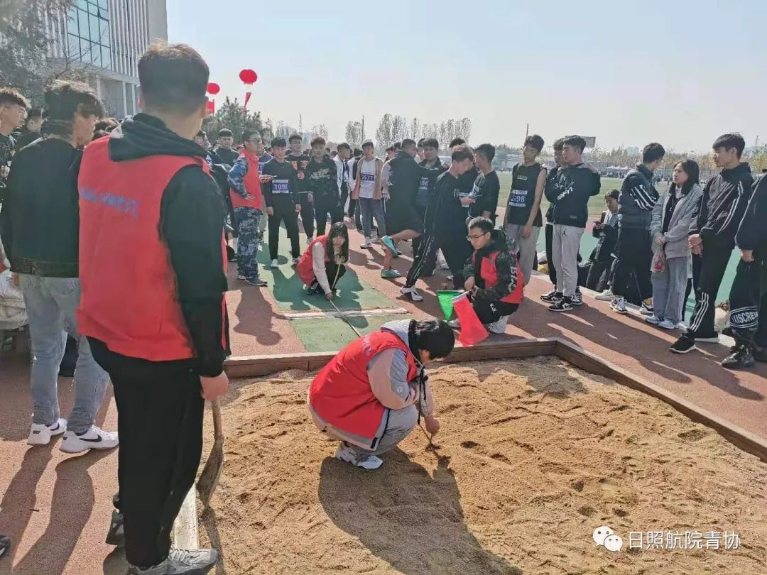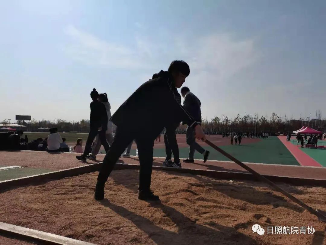 在跳远与三级跳上,志愿者们松沙填沙,旁边记分,到了中午一直都工作,替班,特别辛苦。展示了日照航海工程职业学院青年志愿者的风采。