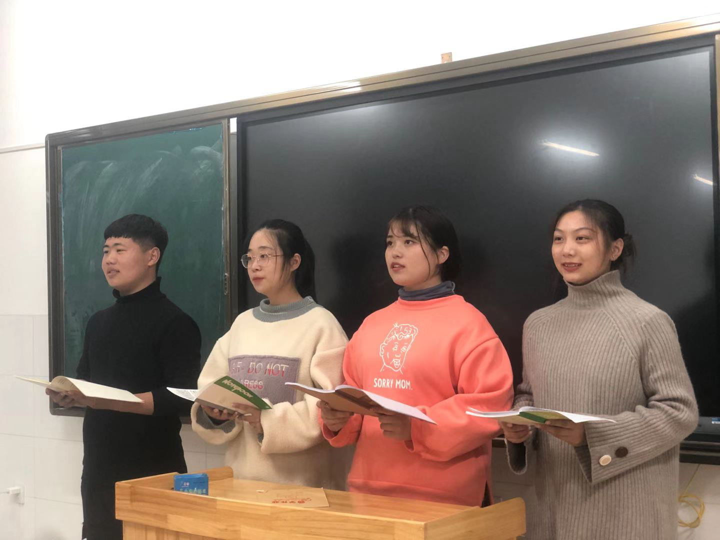 Today广播社同学们经过一天的忙碌学习,晚上基本没有多少的休息时间,但是她(他)们没有顶点儿的松懈,没有喊苦喊累,依然勤学苦练面对today广播社同学们紧张有序的深情朗诵,让我们身临其境,看到了强大中国多年前侵略者侵略中国那段屈辱历史背后所隐藏的中国人民的伟大精神,这种强大的精神,即使面对敌人的残酷刑法,即使面对敌人的洋枪大炮我们也不怕坚韧不拔,顽强到底。