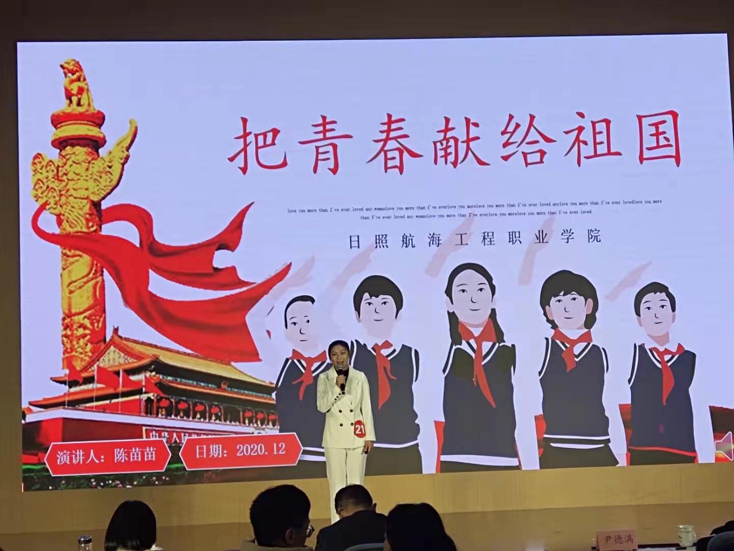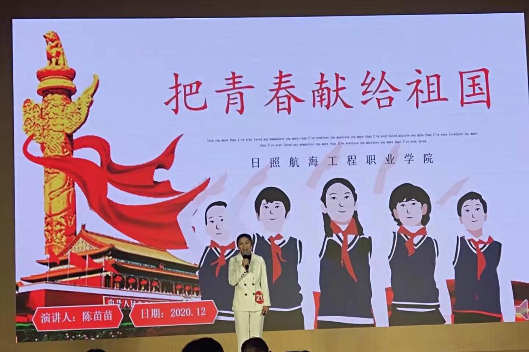 日照航海工程学院演讲者王娟的心手相连,我与祖国共命运,叙述了疫情期间中国民众的团结,中国的力量,中国的担当。